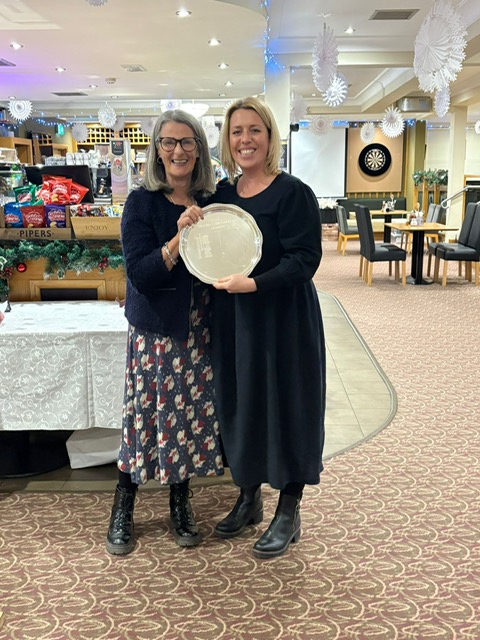 A record number of Past Captains attended this years Past Captains Day with 4 Past Captains playing for the cup. There was a lovely atmosphere as we all chatted and reminisced. Everyone enjoyed a lovely meal courtesy of The Red Deer and a drink courtesy of the late Margaret MacRae so Cheers Margaret. The winner this year was Lande Pattinson seen here being presented with the trophy by Helen Telford. Runner up was Audrey Smith.